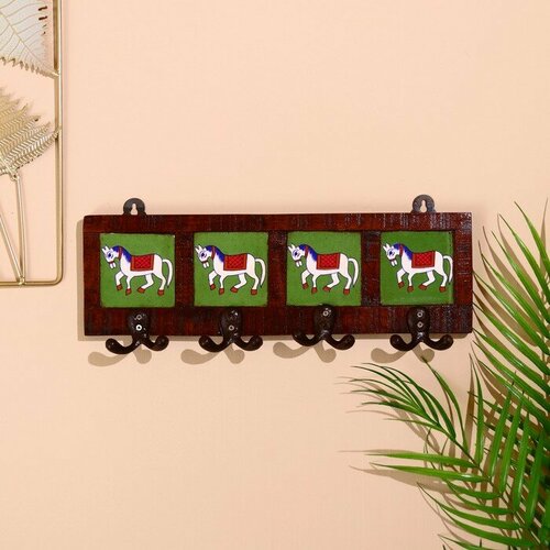 Вешалка "Караван"лошади, 22*4*12см, дерево, 4 крючка цвет микс