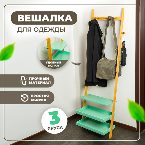 Вешалка для одежды и аксессуаров напольная в прихожую Solmax&Home, бамбук 53х25х175