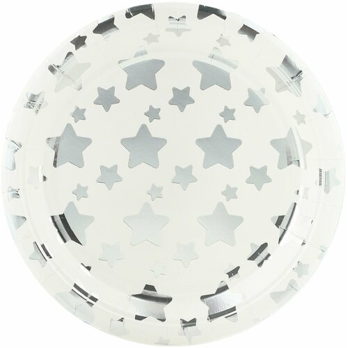 Тарелки (9'/23 см) Звезды Микс, Белый/Серебро, Металлик, 6 шт.