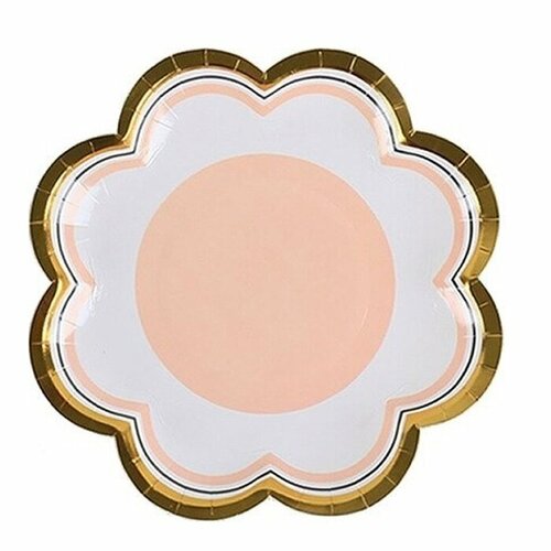 Тарелки одноразовые Волна веселья d-18 см, Цветок, Розовый, Металлик, 6 шт (623590)