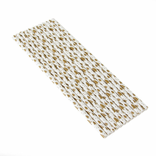 Трубочки для коктейлей, Елочки, Белый/Золото, 12 шт.