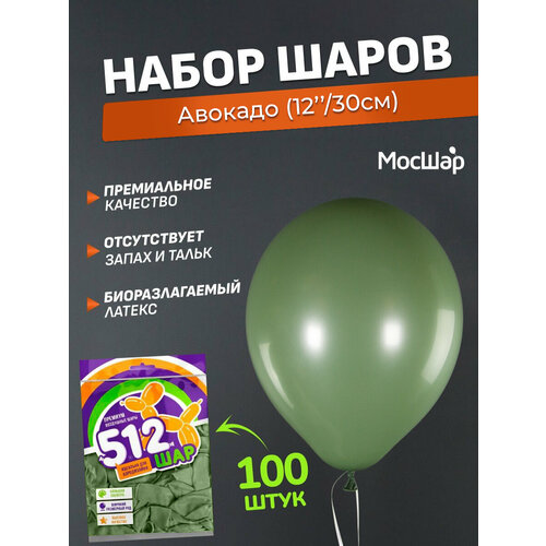 Набор латексных шаров Пастель премиум - 100шт, авокадо, высота 30см / МосШар