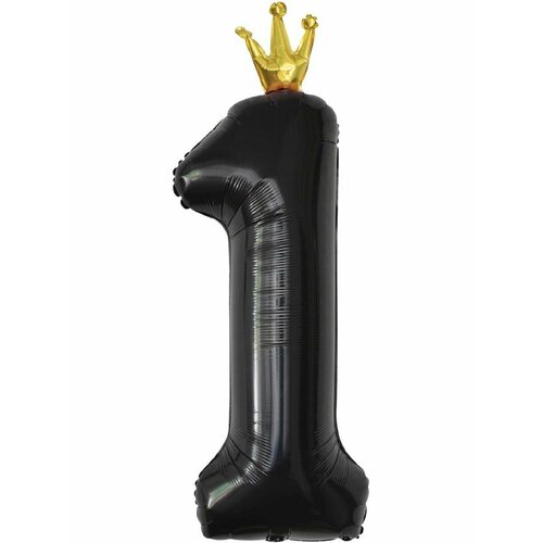 Фольгированный воздушный шар Годик цифра 1, с короной, высота 102см / МосШар