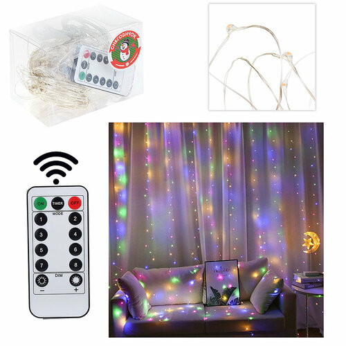 Гирлянда электрическая интерьерная 3х2 метра, Cветодиодная гирлянда штора на Новый год, Занавес, Электрогирлянда, Разноцветный