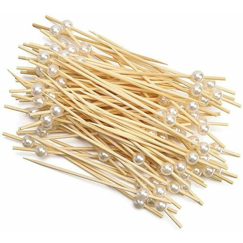 Пики Топперы, с бусинами, Белый жемчуг, 12 см, 50 шт.