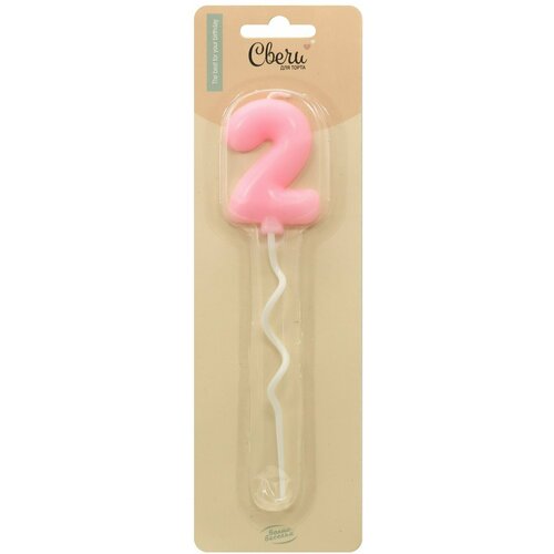 Свеча Цифра, 2 Воздушная серия, Розовый, 6 + 11 см, 1 шт. с держат.