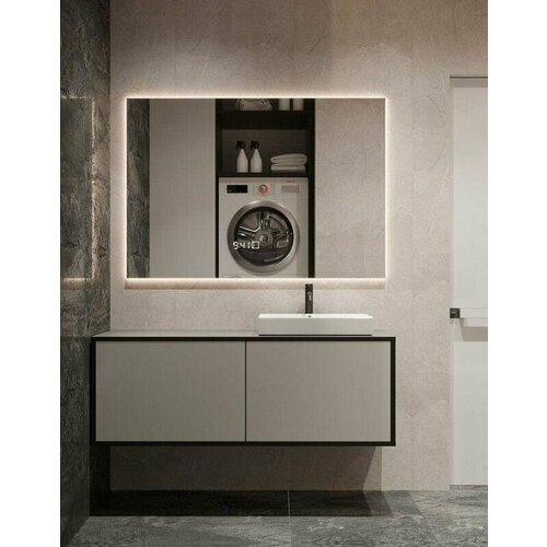 Зеркало Квартал прямоугольное 80*110 с нейтральной LED-подсветкой с антизапотеванием и часами горизонтальное