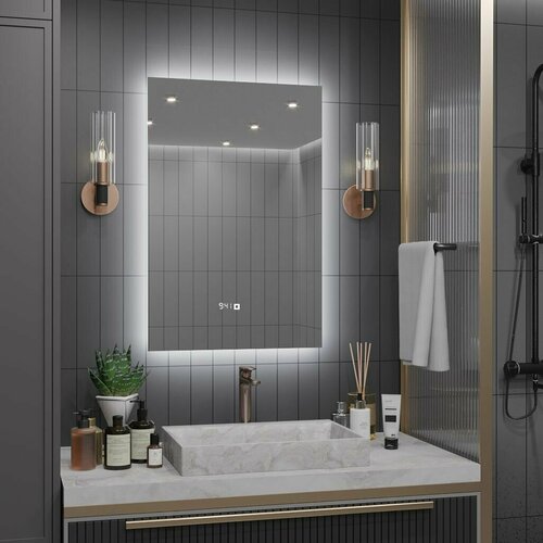 Зеркало Квартал 60*50 с нейтральной LED-подсветкой и антизапотеванием вертикальное