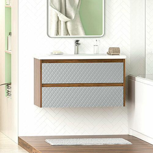 Тумба с раковиной подвесная Brevita ELCHE - 100 с 2 ящиками серый кашемир