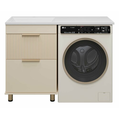 Тумба под стиральную машину бежевая Enfida 60 с раковиной Гавана 120 левая
