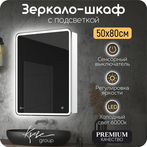 Зеркало шкаф (левый) с подсветкой и подогревом в ванную KVVgroup Sky 50х80 LED подсветка с сенсорным управлением