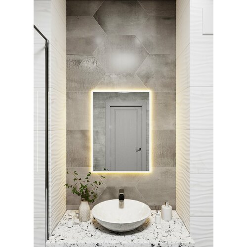 Зеркало с подсветкой в алюминиевой раме, настенное, ONE MIRROR, 70х50 см. Белое. Свет: Теплый белый 3000К