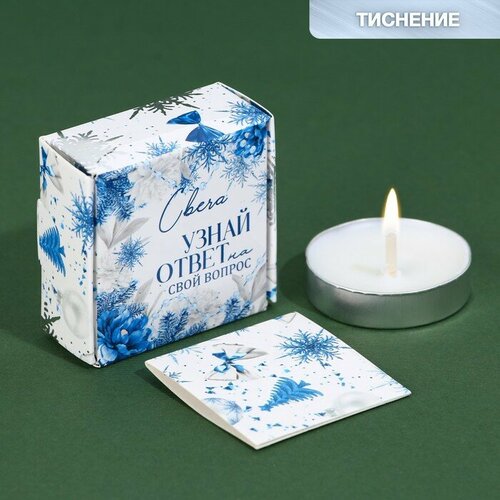 Зимнее волшебство Новогодняя чайная свеча для гадания «Узнай ответ», без аромата, 3,7 х 3,7 х 1 см.