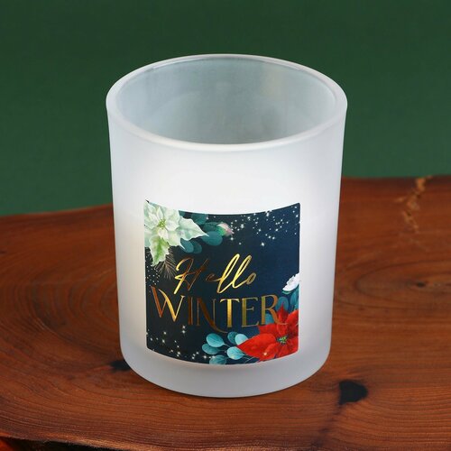 Свеча в стакане «Hello winter», аромат еловые шишки, 7 х 7 х 8,5 см.