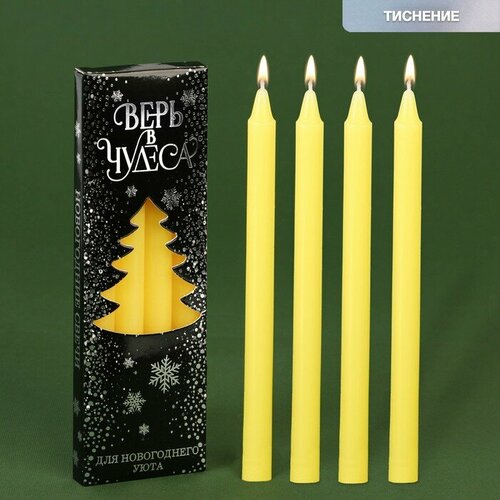 Набор восковых свечей «Верь в чудеса», 4 шт, желтые, 15 х 1 х 1 см.