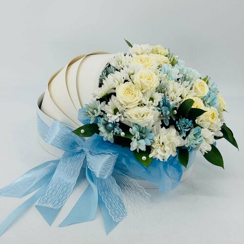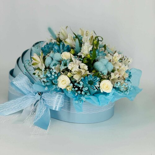 Букет цветов на выписку из роддома для мальчика, букет в люльке 103086164168