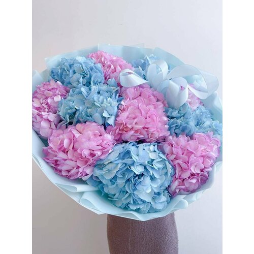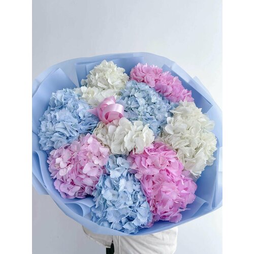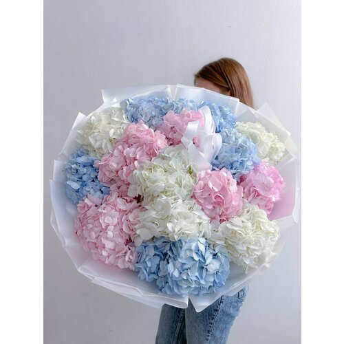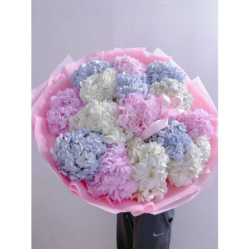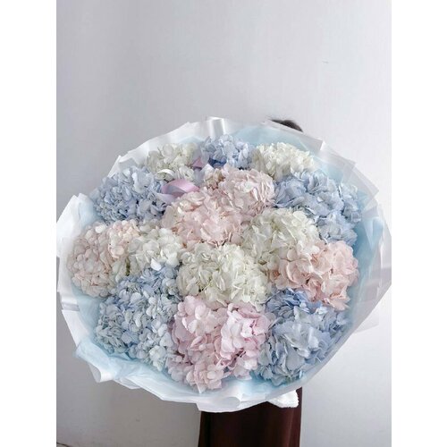 Пышный букет облако из ароматных гортензий белого, голубого и розового цвета 15 шт. от FlowersGo 4298205660