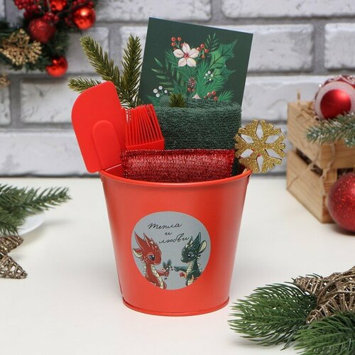 Доляна Новогодний набор подарочный "Magic Сhristmas" варежка-прихватка, лопатка силикон