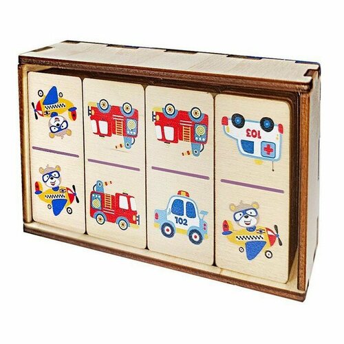 Домино деревянное «Транспорт» 28 фишек 60х27 мм (комплект из 6 шт)