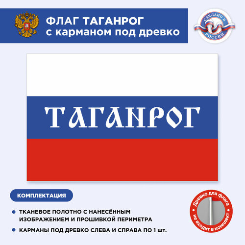 Флаг России с карманом под древко Таганрог, Размер 2х1,33м, Триколор, С печатью