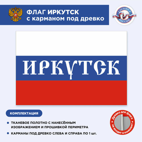 Флаг России с карманом под древко Иркутск, Размер 2,25х1,5м, Триколор, С печатью