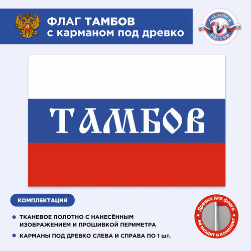 Флаг России с карманом под древко Тамбов, Размер 1,05х0,7м, Триколор, С печатью