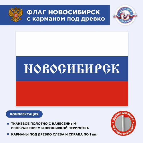 Флаг России с карманом под древко Новосибирск, Размер 1,05х0,7м, Триколор, С печатью