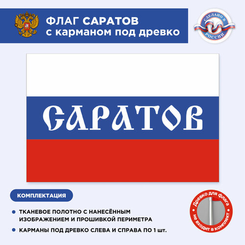 Флаг России с карманом под древко Саратов, Размер 2х1,33м, Триколор, С печатью