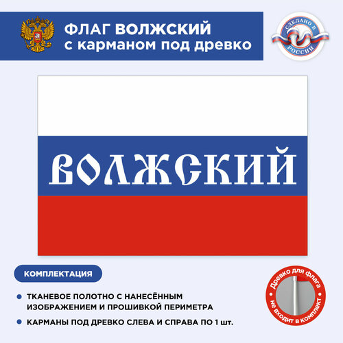 Флаг России с карманом под древко Волжский, Размер 1,05х0,7м, Триколор, С печатью