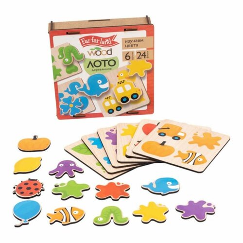 Лото деревянное "Изучаем цвета" в деревянной коробке, 16,5x16,5x4,5 см