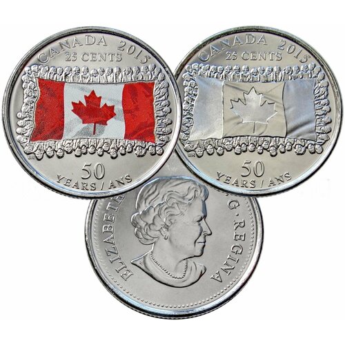 Набор 2 монеты 25 центов 2015 Канада 50 лет флагу Канады, UNC