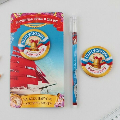 Подарочный набор: ручка с колпачком, шариковая 0,5 мм, значок « Выпускник школы ».