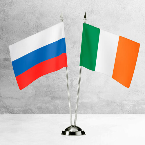 Настольные флаги России и Ирландии на пластиковой подставке под серебро