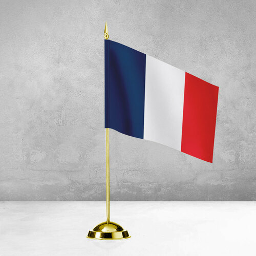 Настольные флаги России и Франции на пластиковой подставке под золото