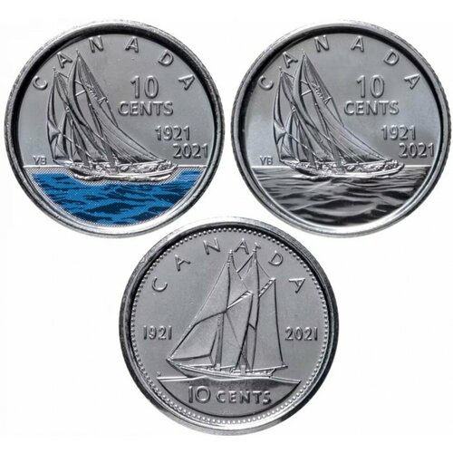 Канада набор из 3 монет 10 центов 2021 /100 лет спуска на воду шхуны Bluenose/