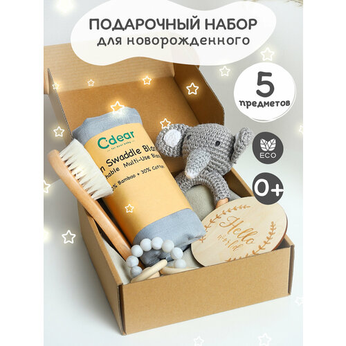 Подарочный набор для новорожденных на выписку "Серый" подарок новорожденному мальчику и девочке, для новорожденного малыша на рождение ребенка