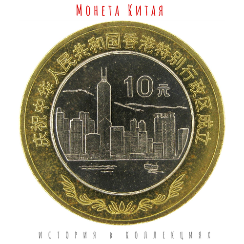 Китай монета 10 юаней 1997 Возврат Гонконга под юрисдикцию Китая / AU
