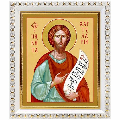 Блаженный Никита Константинопольский, хартуларий, икона в белой пластиковой рамке 12,5*14,5 см