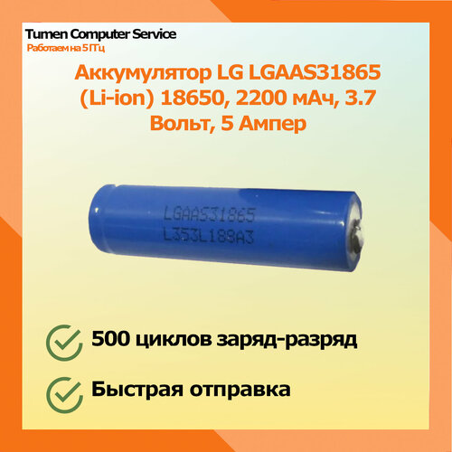 Аккумулятор LG LGAAS31865 (Li-ion) 18650, 2200 мАч, 3.7 Вольт, 5 Ампер