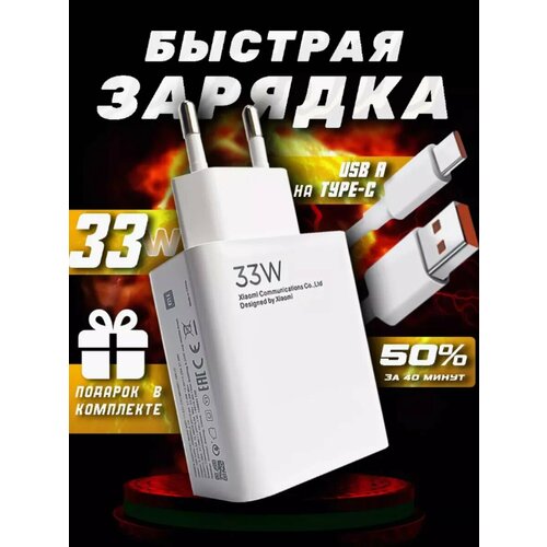 Быстрая зарядка для телефона Xiaomi 33w, комплект, Type-c
