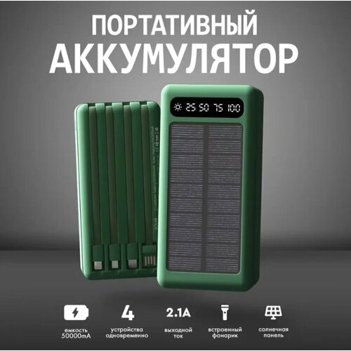 Внешний аккумулятор зелёного цвета 50000 mAh для телефона aйфона iphone android windows / повербанк / power bank с солнечной батареей