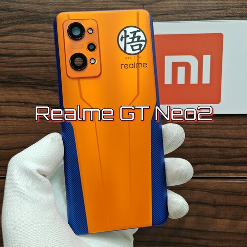Крышка для Realme GT Neo2 оригинальная (заднее стекло) цвет: Оранжевый с синим