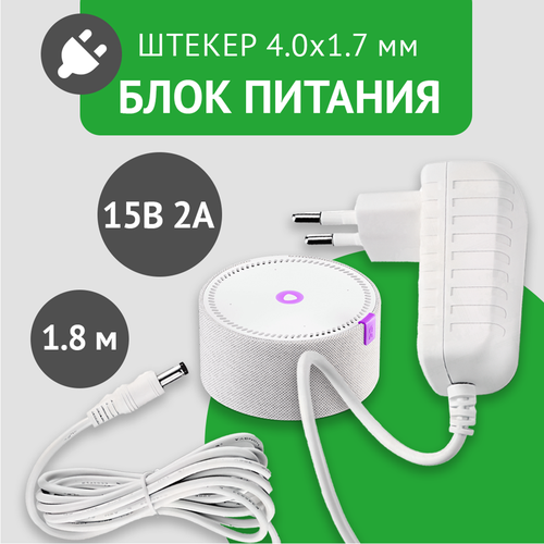 Блок питания 15В 2А для умной колонки Яндекс Станция Мини, универсальный, штекер 4.0 x 1.7 мм, без индикатора работы