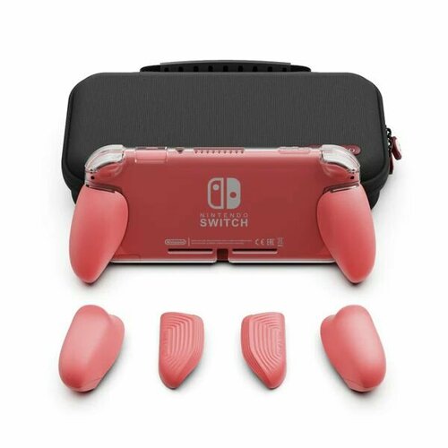 Комплект: Защитный чехол "GripCase" + Защитный кейс "MaxCarry" Skull & Co для Nintendo Switch Lite со сменными рукоятками (3 пары), цвет Розовый (Coral)