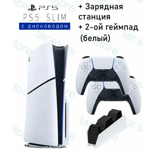 Sony PlayStation 5 Slim, с дисководом, + 2й , розовый геймпад PS5 и зарядная станция