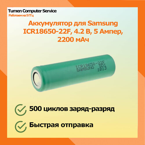 Аккумулятор для Samsung ICR18650-22F, 4.2 В, 5 Ампер, 2200 мАч
