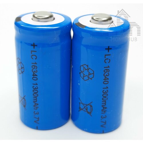 Аккумулятор Li-ion, 16340, 3.7V, 1300mAh, с наконечником, 2шт