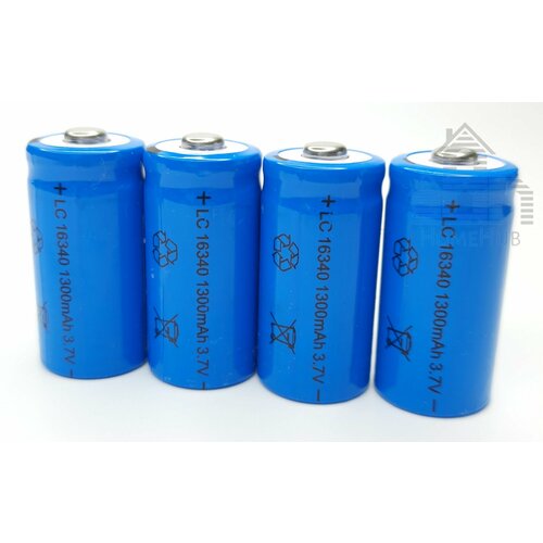 Аккумулятор Li-ion, 16340, 3.7V, 1300mAh, с наконечником, 4шт