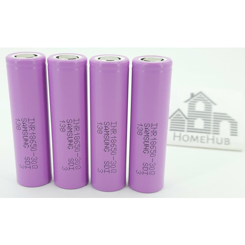 Аккумулятор Samsung Li-ion, INR18650-30Q, 3.7V, 3000mAh, ток до 20А без защиты, 4шт
