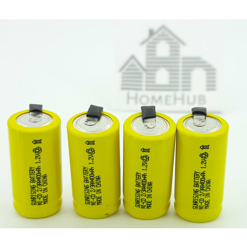 Аккумулятор Sunrising Ni-Cd, 2/3 AA, 1.2V, 400mAh, с лепестками, 4шт